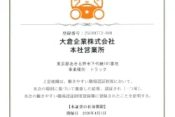 2026年4月1日 / 最終更新日時 : 2026年4月15日 okwurakigyo 認証 「働きやすい職場認証制度」の登録更新のお知らせ いつも弊社ホームページをご覧いただき、ありがとうございます。 この度、大倉企業株式会社は「働きやすい職場認証制度(一つ星)」の登録更新をいたしました。 この制度は、職場環境の改善や、仕事と生活の両立支援など、従業員の働く […]